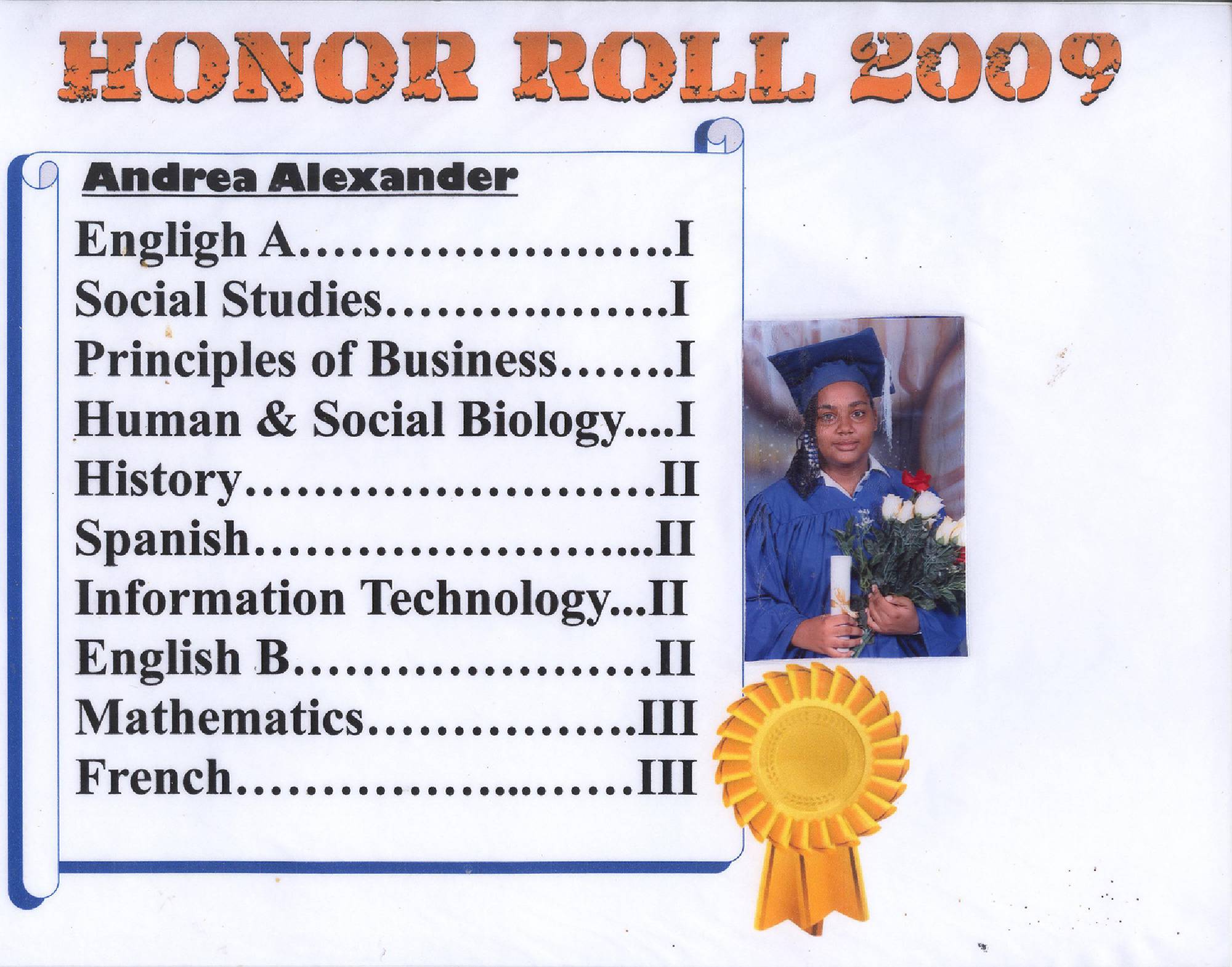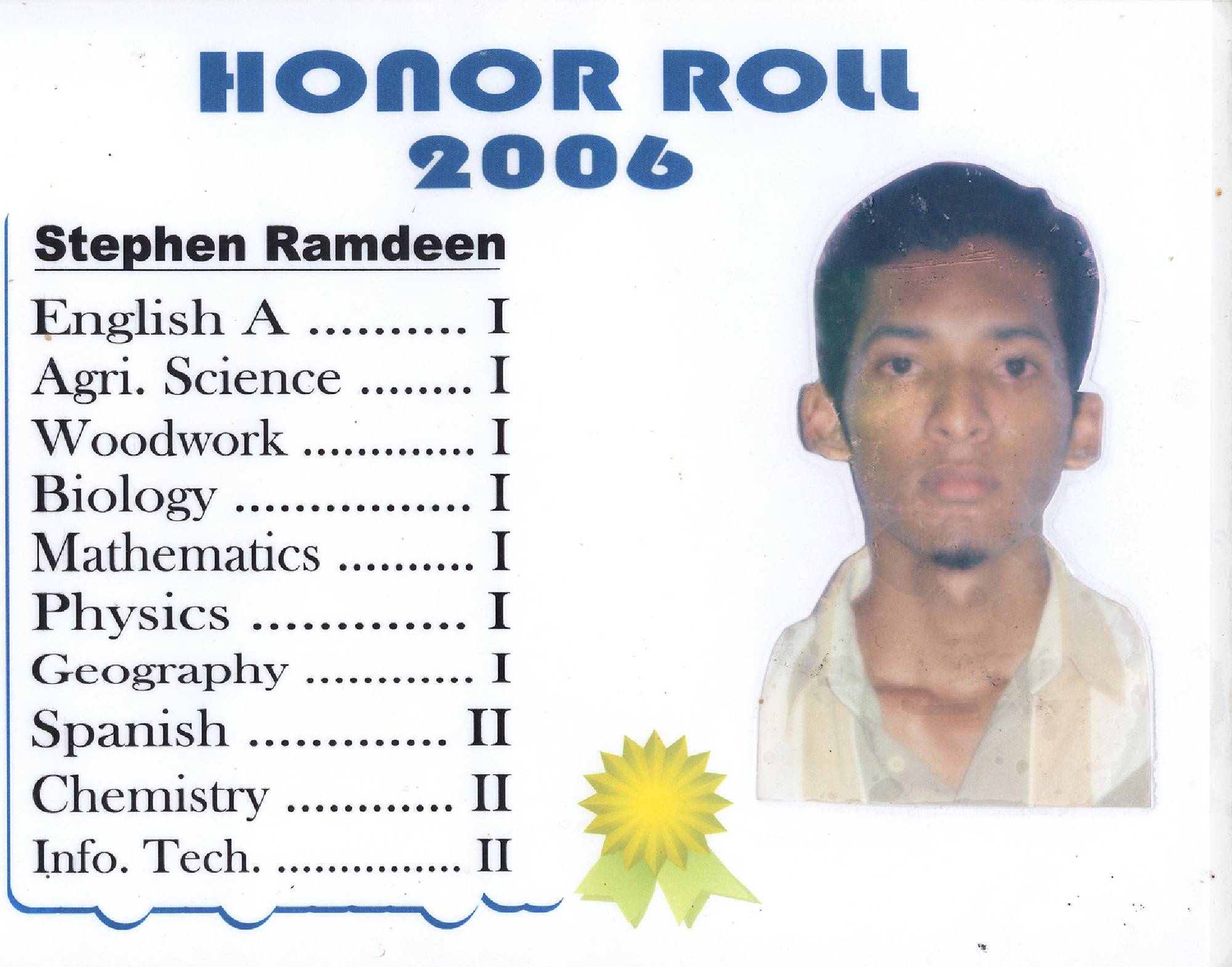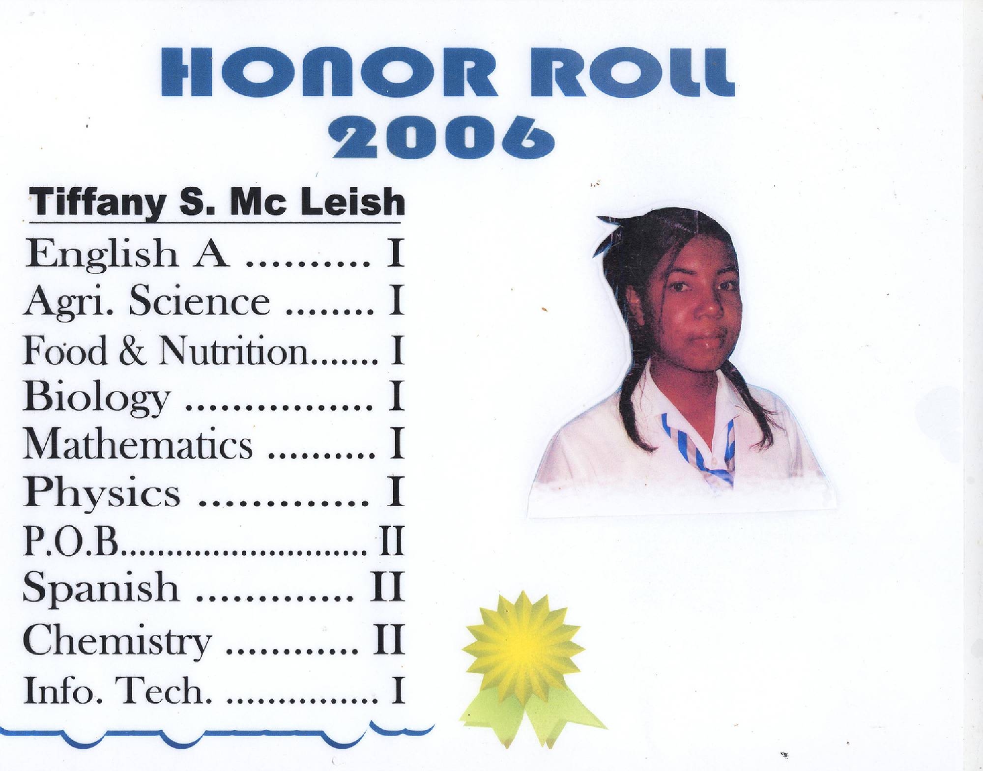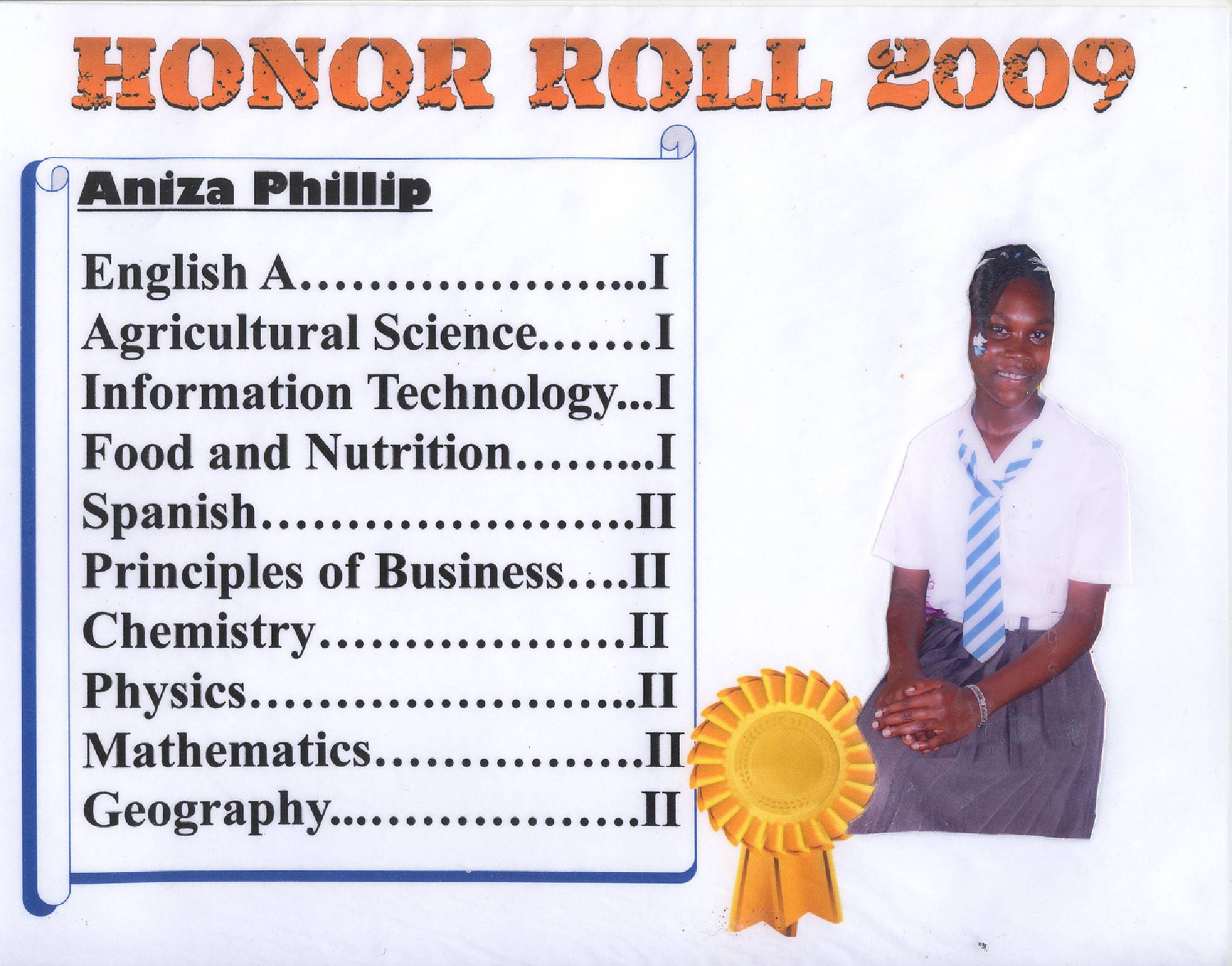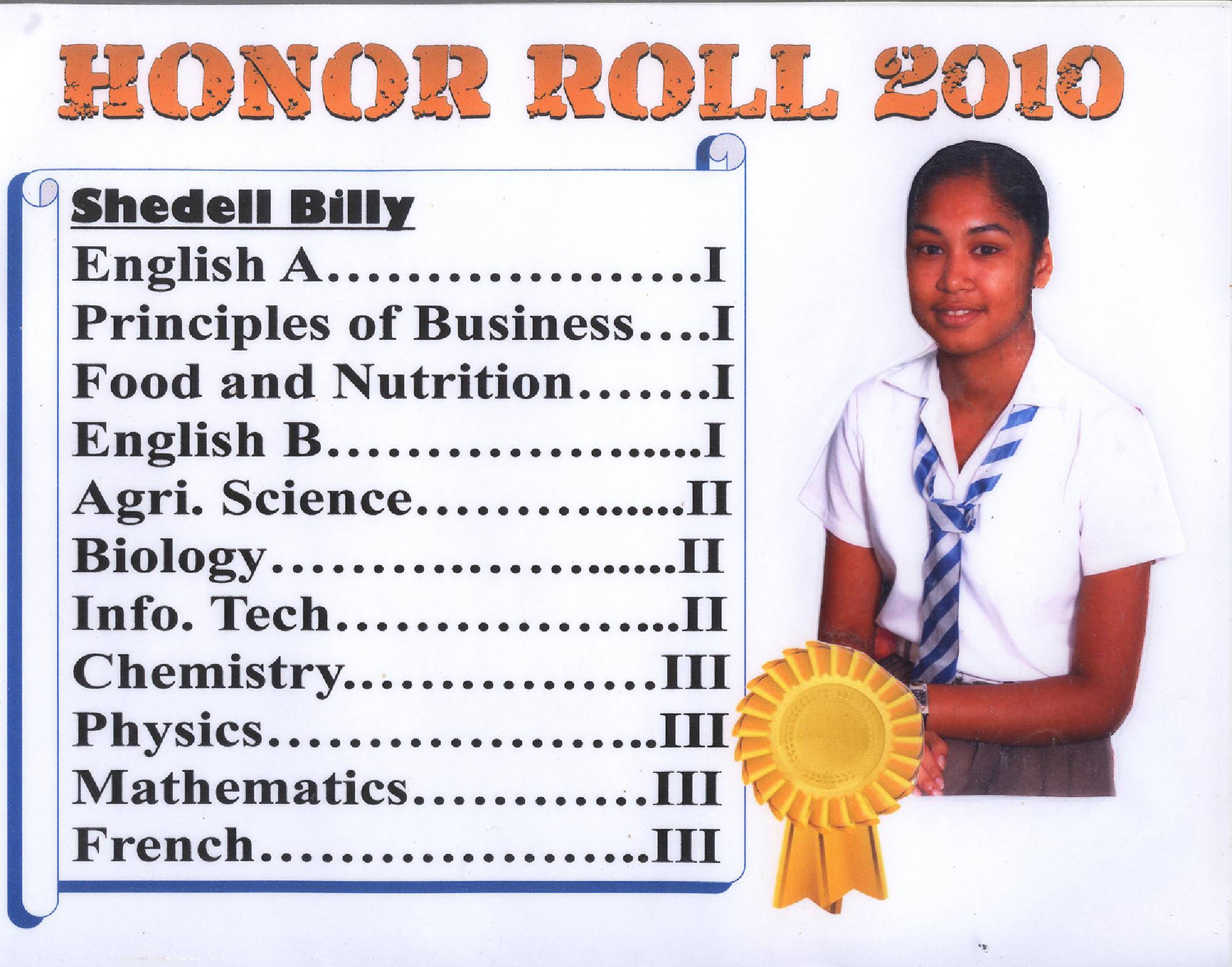 Math, PE, Biology, Physics, HM, BFT, Chemistry, IT, French, Spanish, History, TD, Ag. Sci, Geog